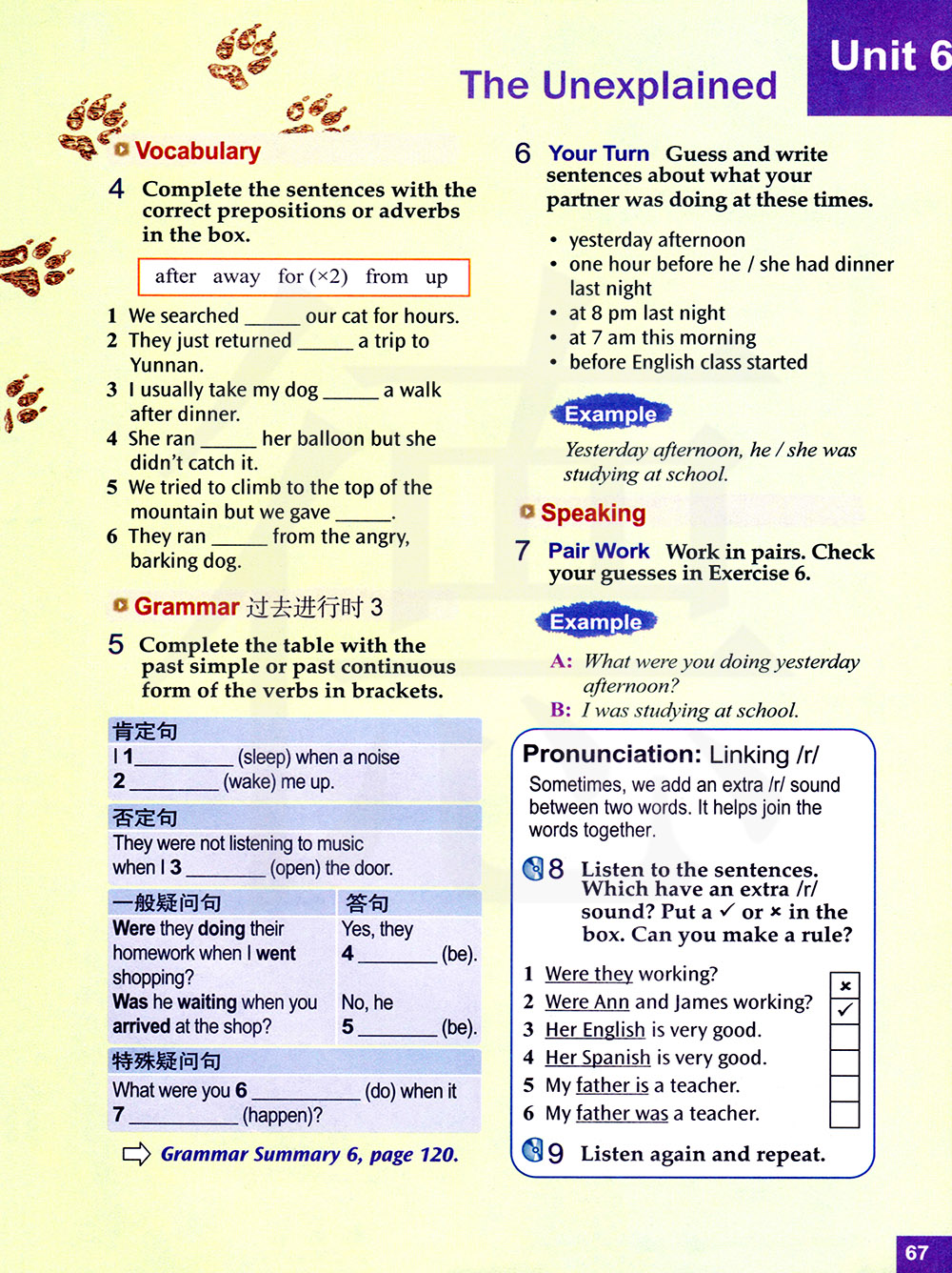 用括号里动词的一般过去时或过去进行时完成这个表格。