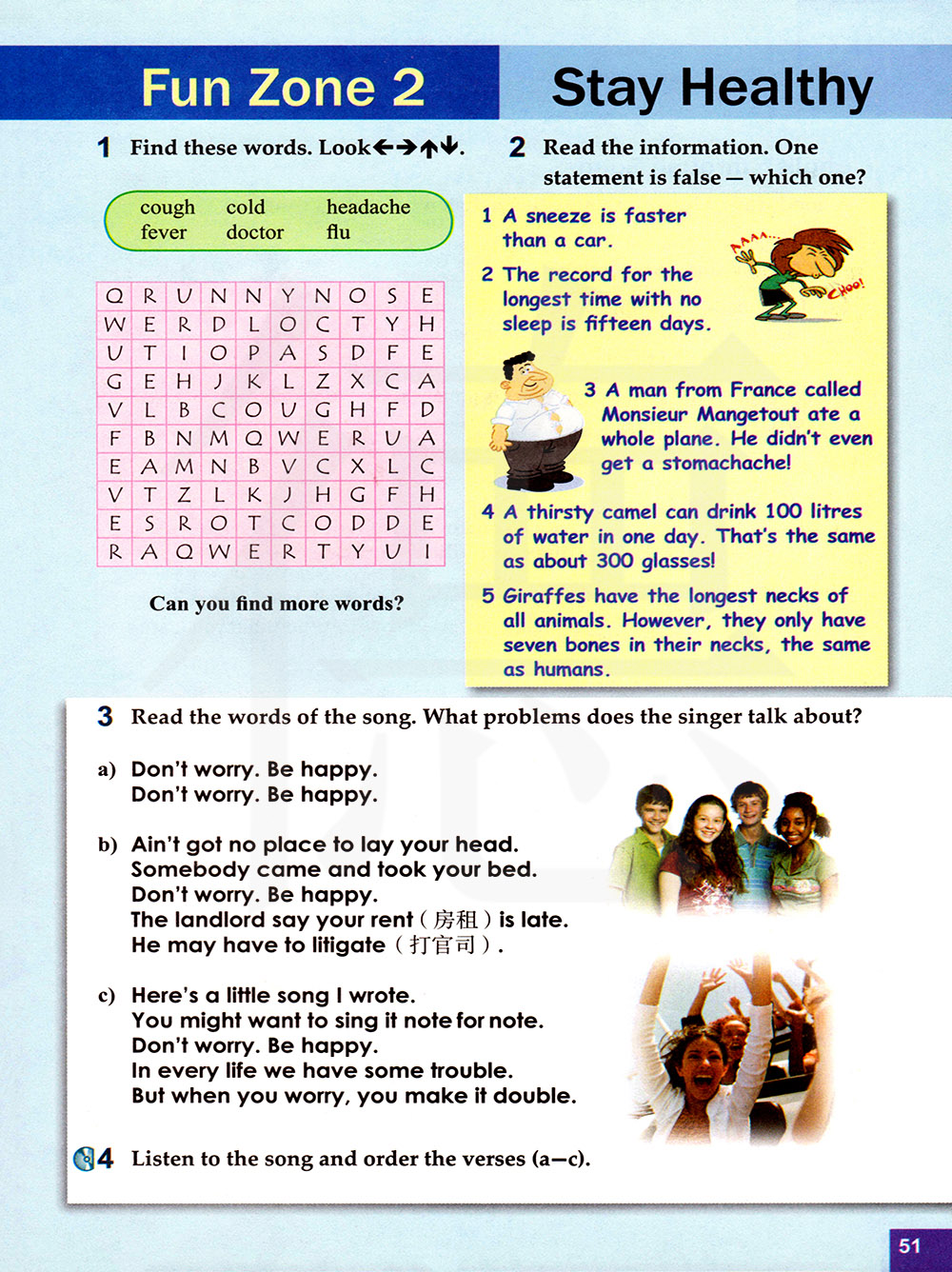 不要担心,开心点。不要担心,开心点。没有地方放你的头。有人来接你的床。别担心。开心点,房东说你的房租很晚了。他可能得诉状。这是我的一首小歌。你可能想唱它的音符。不要担心。要快乐,在每一个生命中我们都有麻烦。但是当你担心时,你会使它倍增。