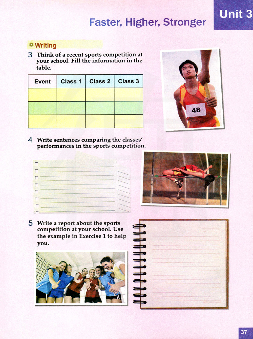 写一篇关于你们学校的运动会报告,用练习1中的例子来帮助你