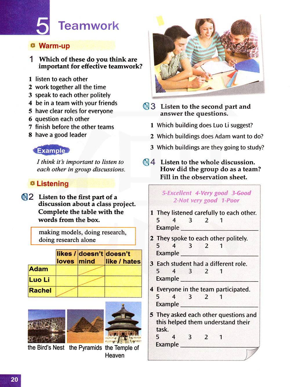 听整个讨论的内容,作为一个团队,组员们是怎么做的?填写这张观察表格。