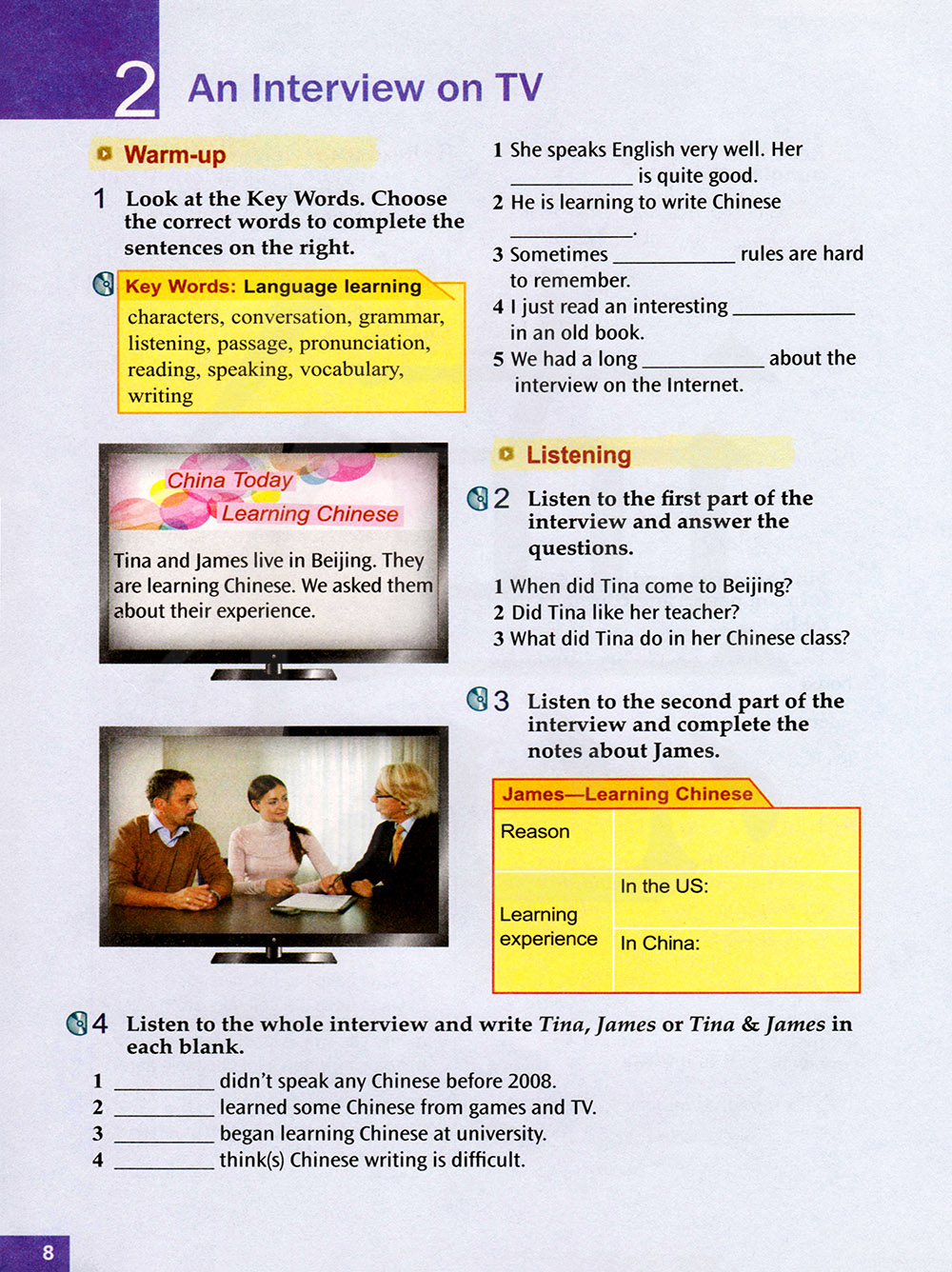 听整段访谈,在空格处写上Tina,james或Tina&James