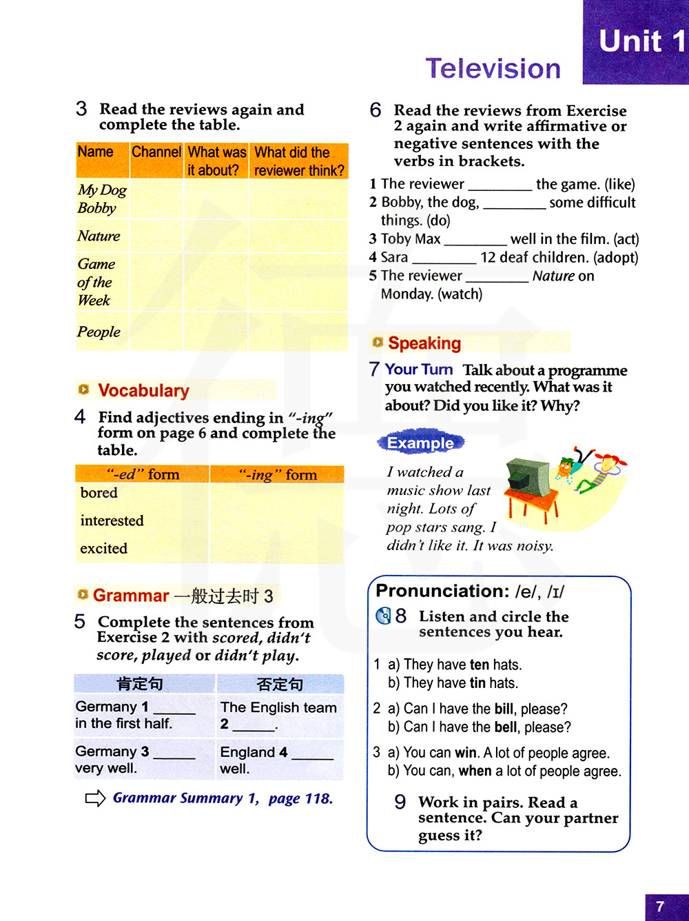 再第6页中找出以"ing"形式结尾的形容词来完成这个表格。