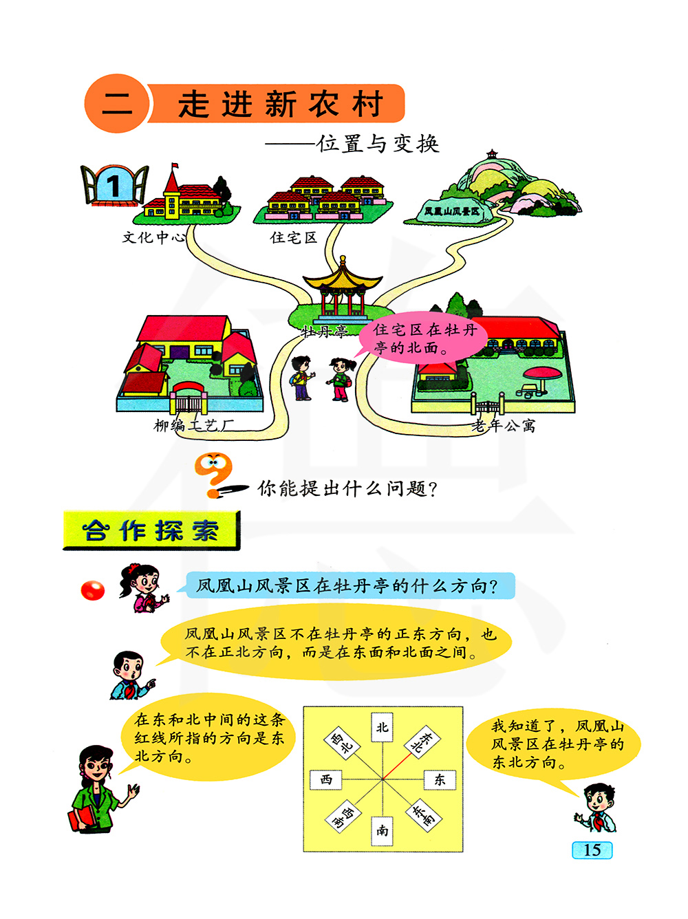 考点一: 辨方向(一定要先画上方向标,再找方向)