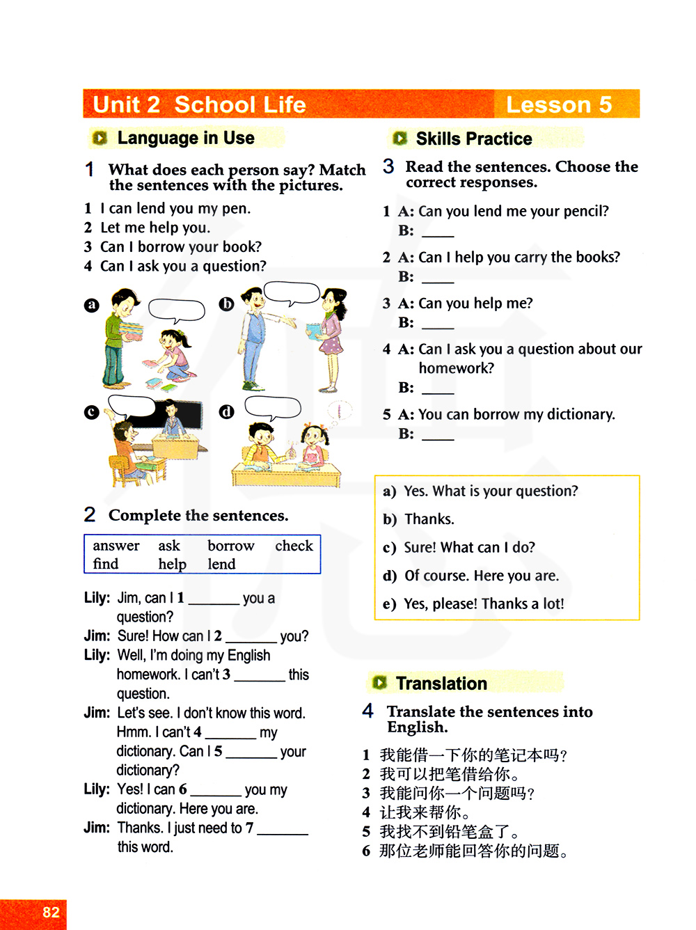 我可以把我的钢笔借给你。让我帮你。我可以借你的书吗?我可以问你一个问题吗?