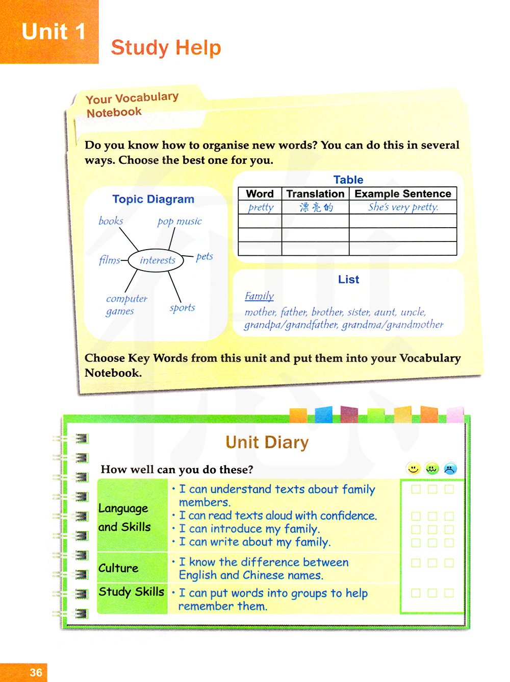 从这也单元挑选关键的单词,把它们记录在你的词汇笔记本上。