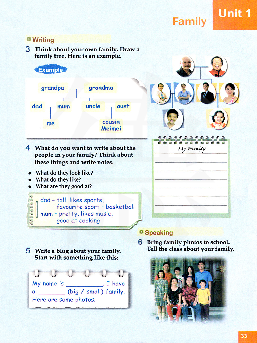 把家庭照片带去学校。告诉班上同学关于你的家人。