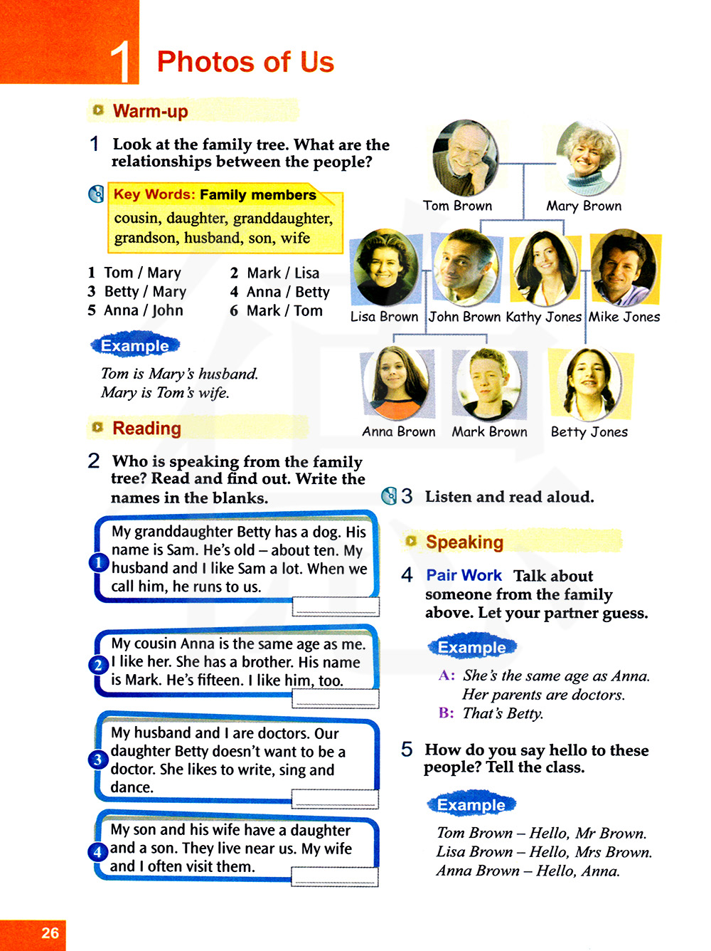 来自家庭树的谁在讲话?读一读,找一找。在空白处写上名字。