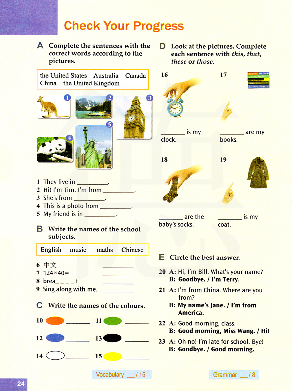 看图片。用单词“this”“that”“these”或者“those”将每句话补充完整。
