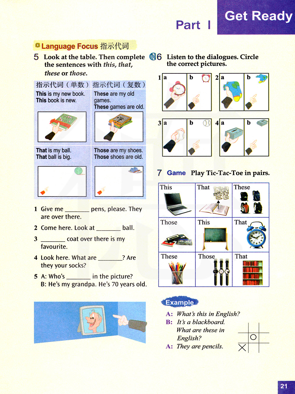 指示代词(单数) 这是我的新书。这本书是新的。那是我的球,那个球很大。 指示代词(负数)这些是我的就有戏。这些游戏是旧的。那些是我的鞋。那些鞋是旧的。