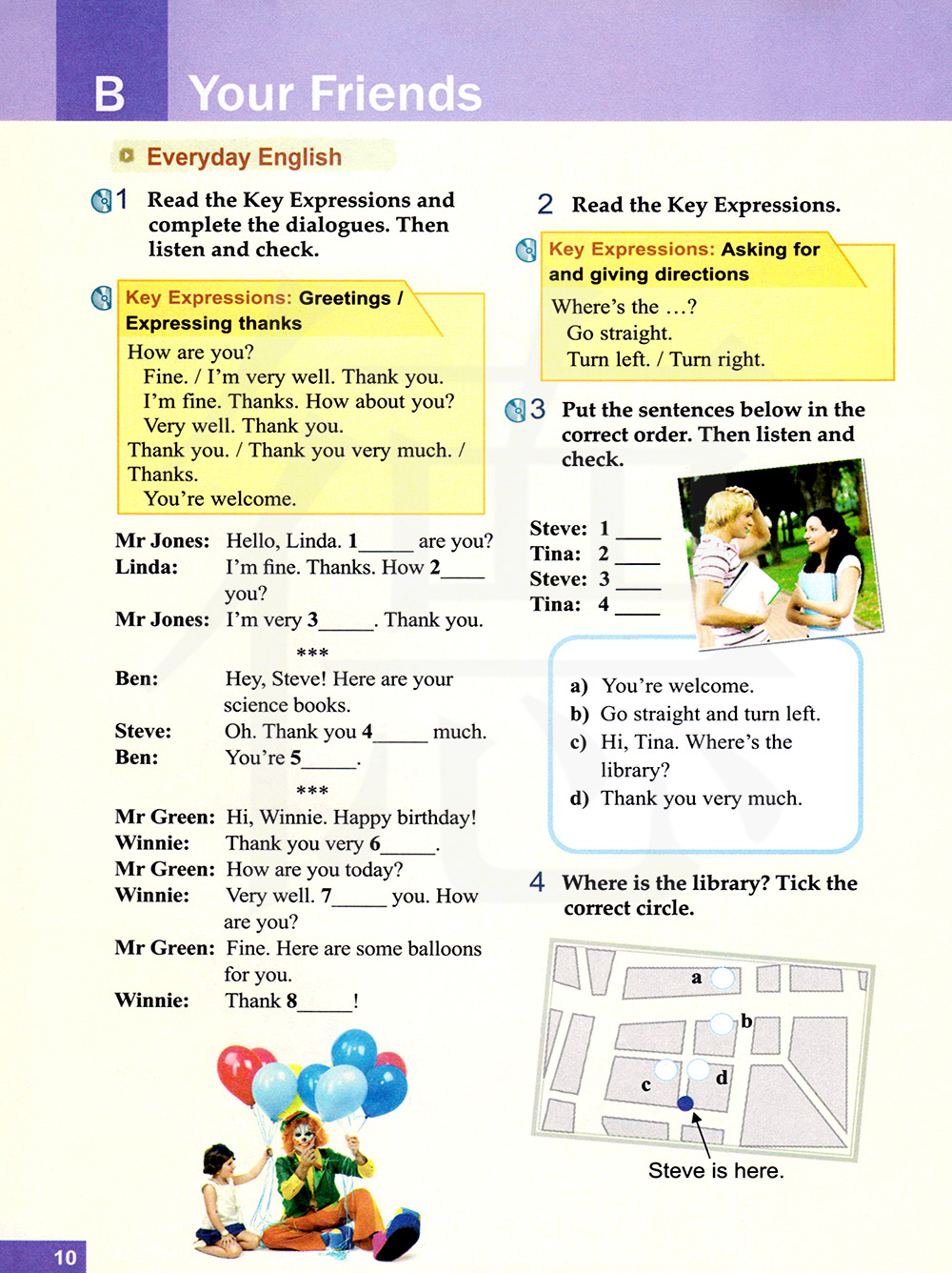 阅读下面的关键词表达法并完成对话。然后听录音,并核对。