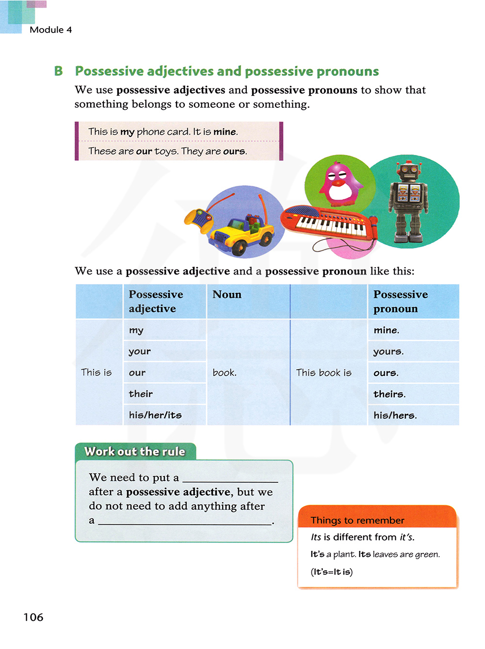 我们像这样使用一个所有格形容词和一个所有格代词: