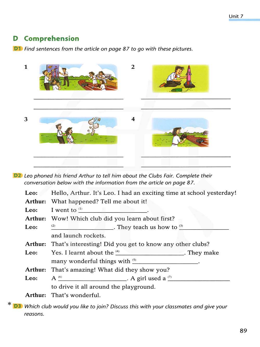 利奥打电话给他的朋友亚瑟,把俱乐部的事如实告诉他。用第87页文章中的信息完成下面的谈话