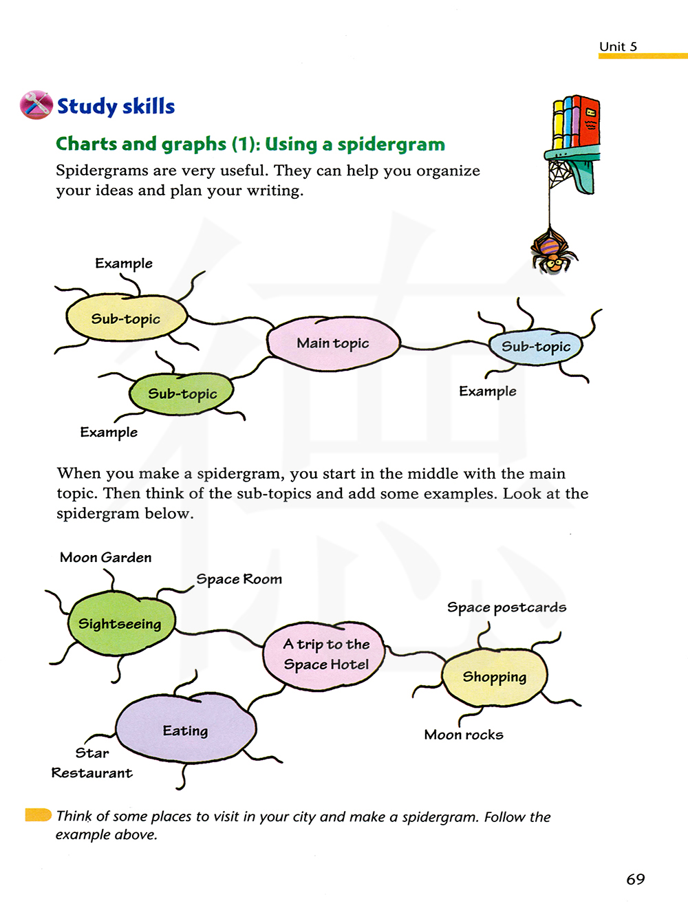 想象你的城市里可供参观的一些地方并做一张蛛形图。