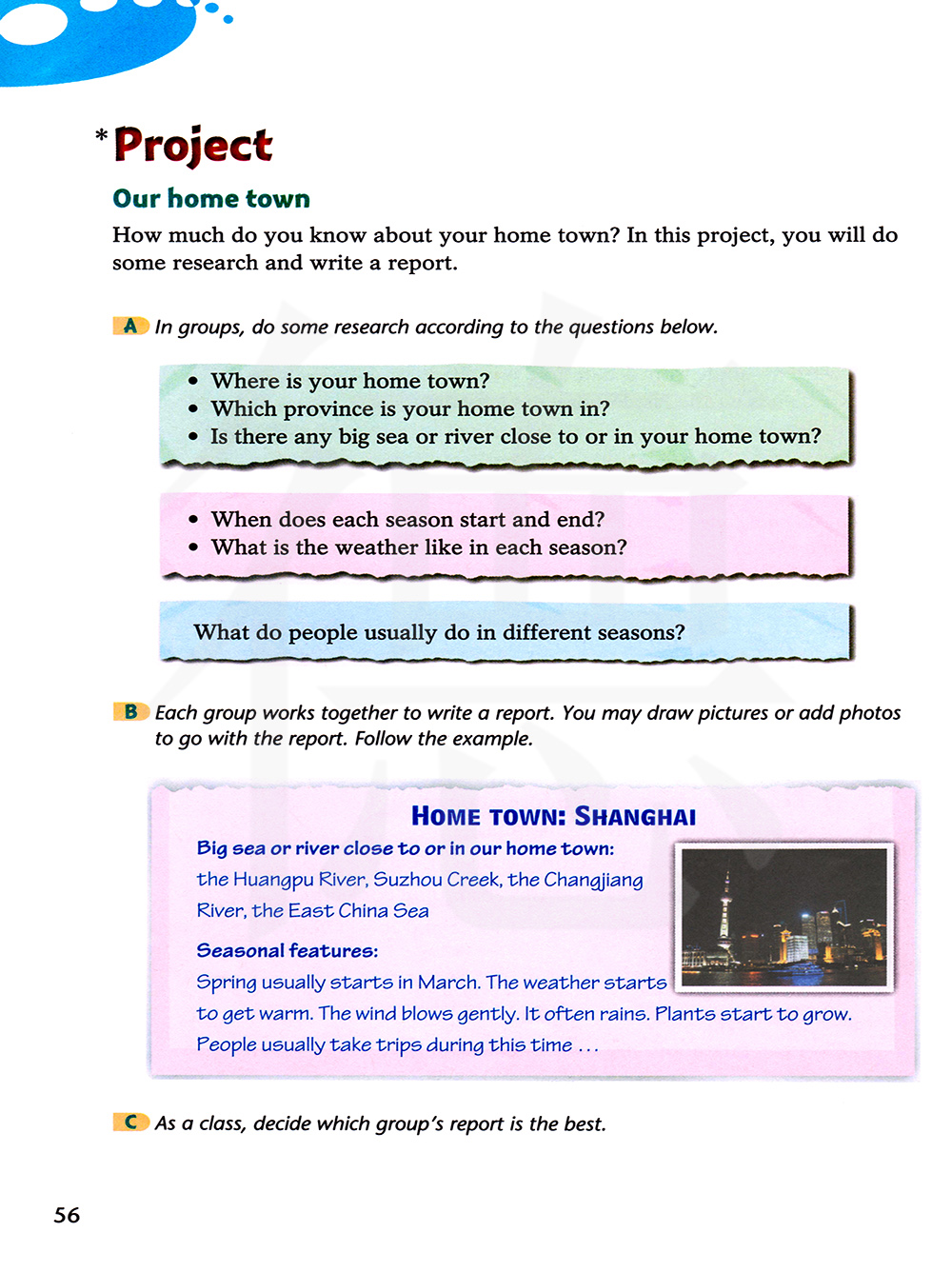 对于你的家乡你了解多少?在这个项目中,你要做些调查并写一份报告