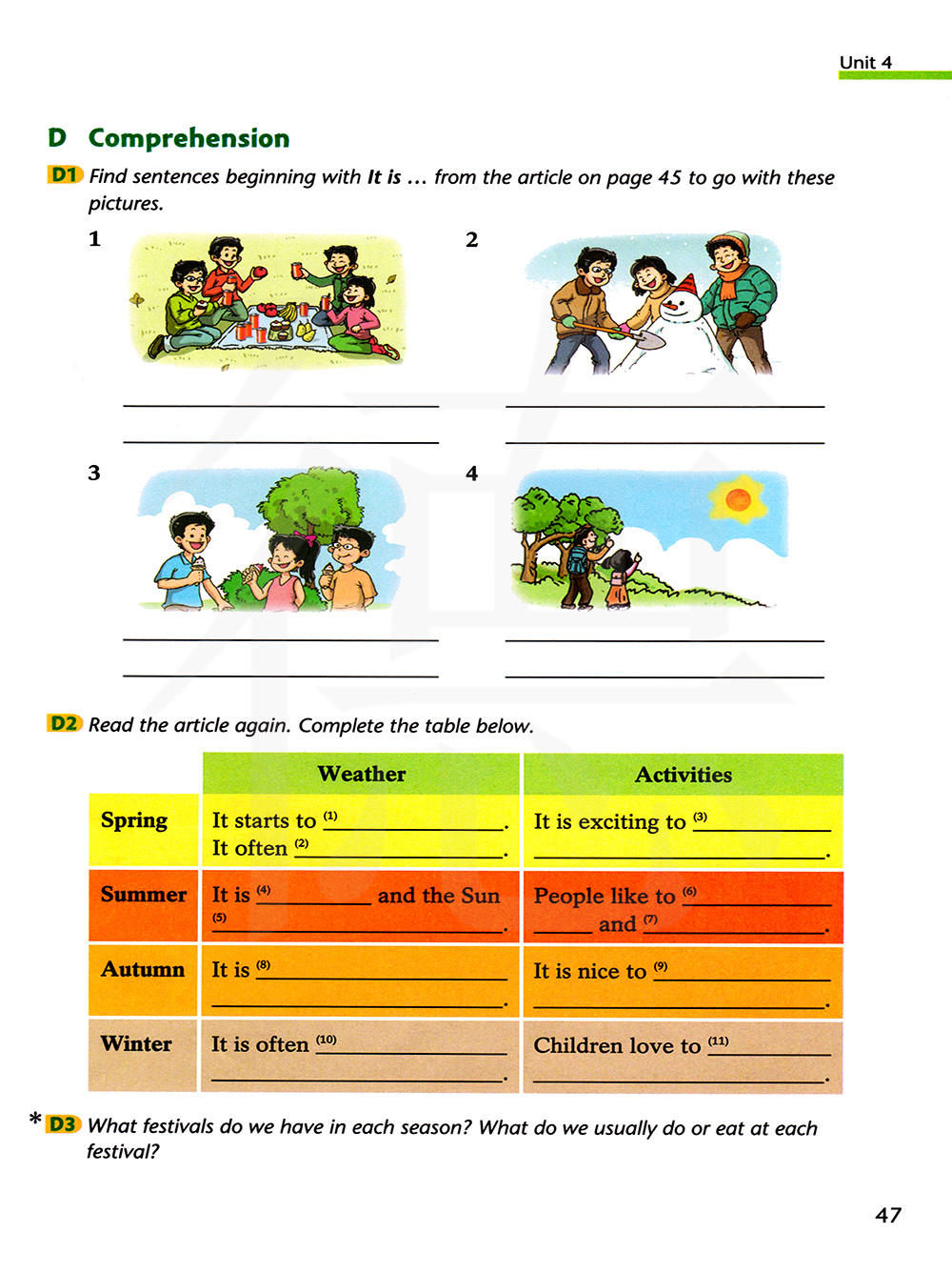在每个季节里我们有些什么节日?每个节日我们通常做什么或吃什么?