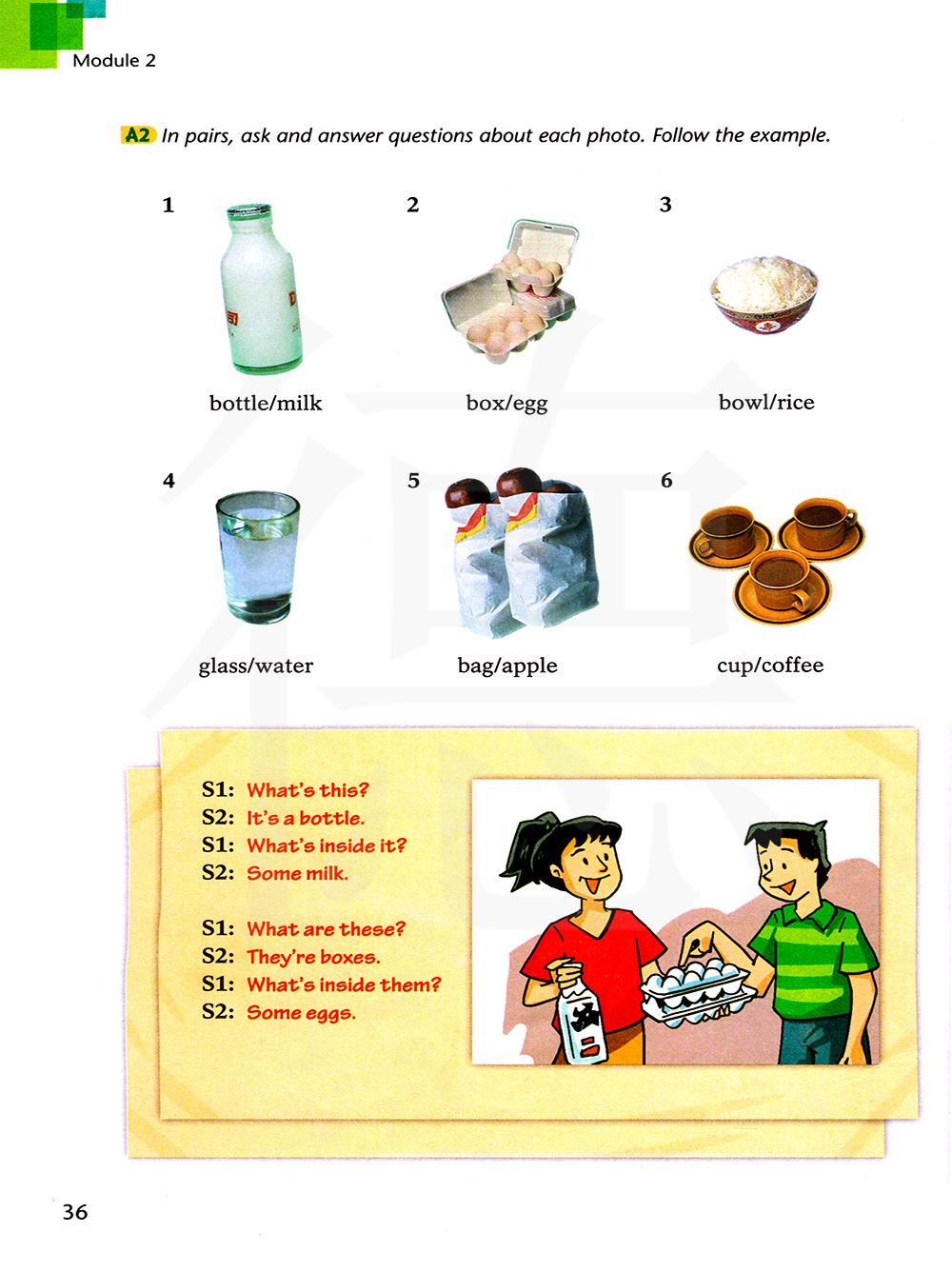两人一组,对每幅图片提问和回答问题。仿照这个例子。