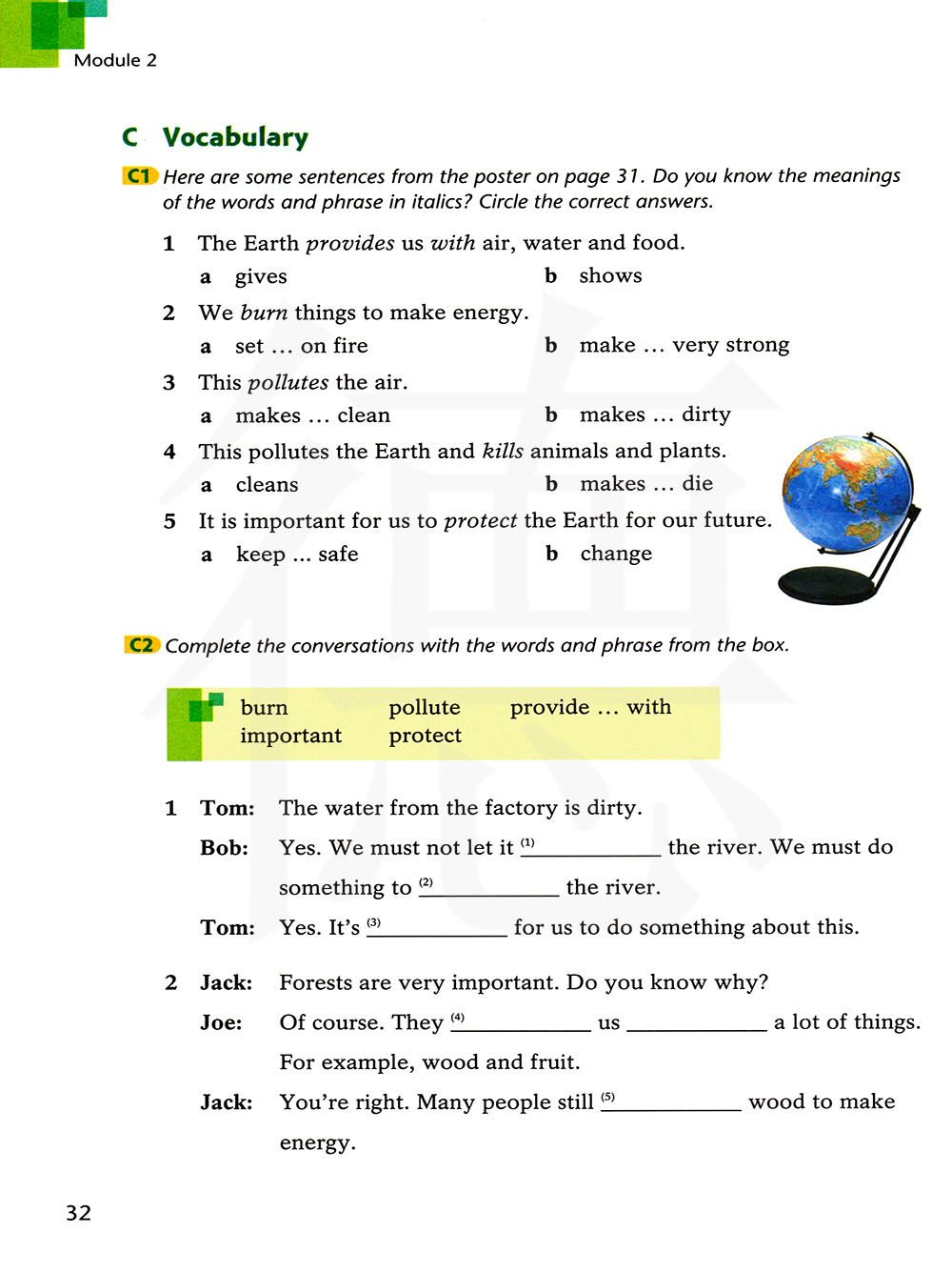 地球提供给我们空气、水和食物。给,给予 展示,给...看