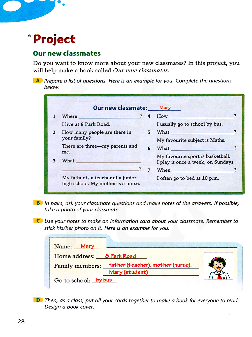 家庭成员:爸爸(老师),妈妈(护士),玛丽(学生)。