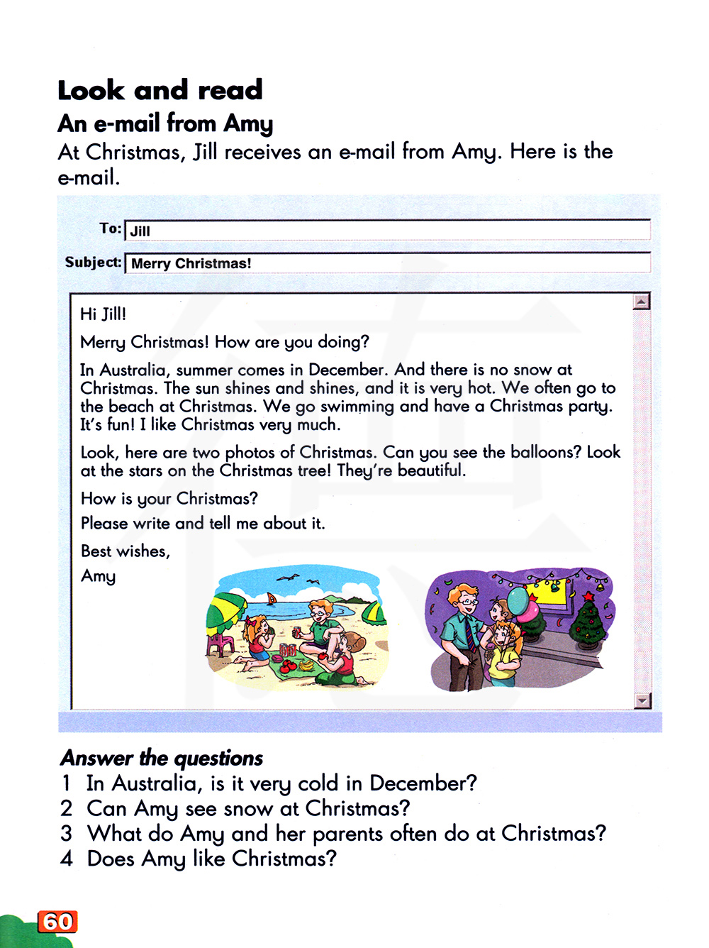 3.艾米和她的父母在圣诞节做什么? 4.艾米喜欢圣诞节吗?