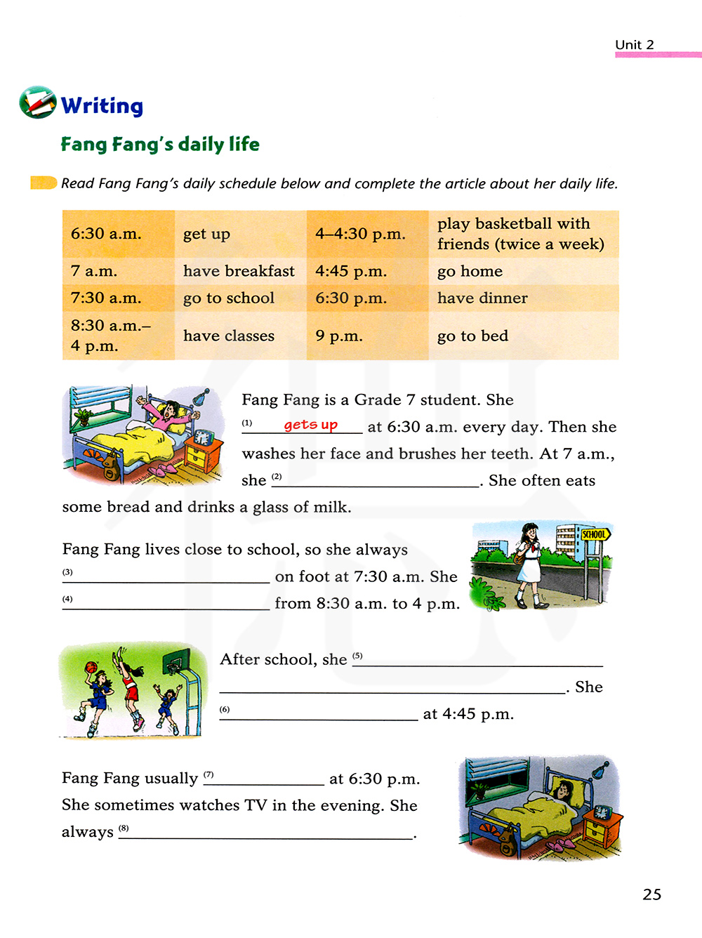 阅读一下方方的日常表并完成关于它的日常生活的文章