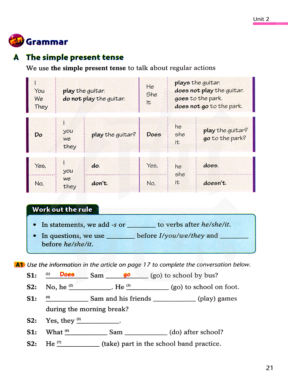 萨姆乘公共汽车去上学吗?不,他不是。他步行去上学。