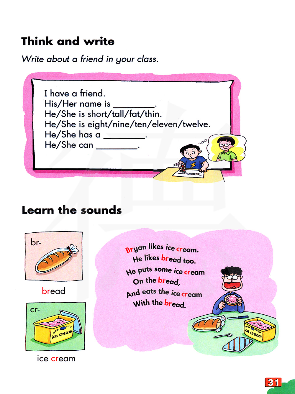 布莱恩喜欢冰激凌,他也喜欢面包,他把一些冰激凌放在面包上,吃起了冰激凌和面包