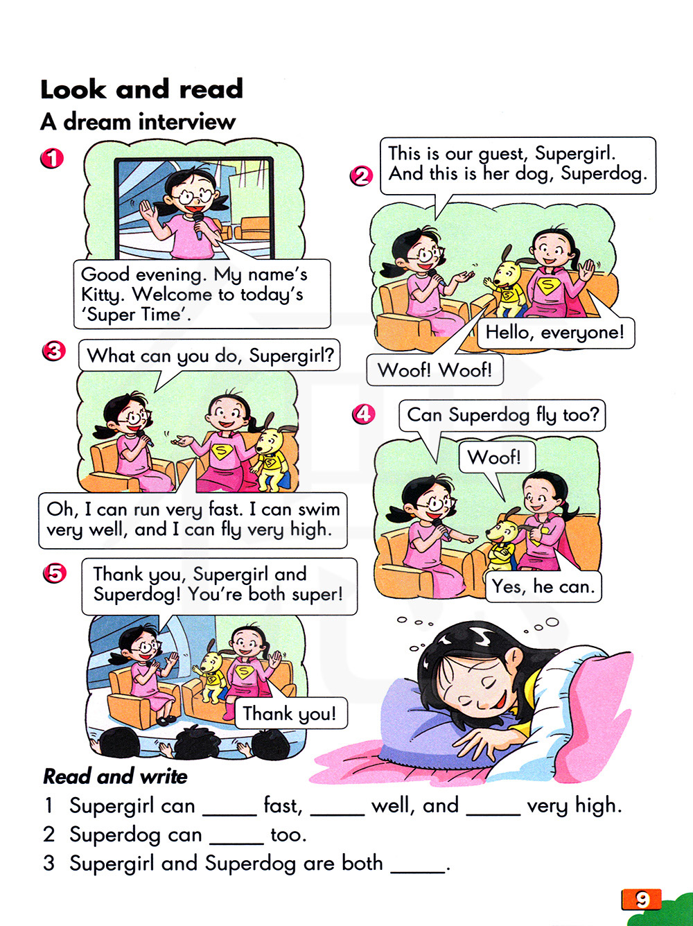 这是我们的嘉宾,超级女孩,并且她的狗,超级狗
