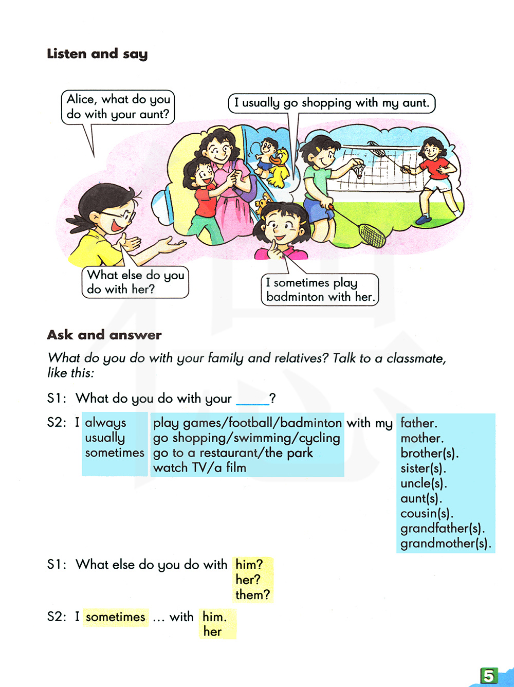 你会和家人和亲戚一起做什么?像这样和一个朋友说一说:
