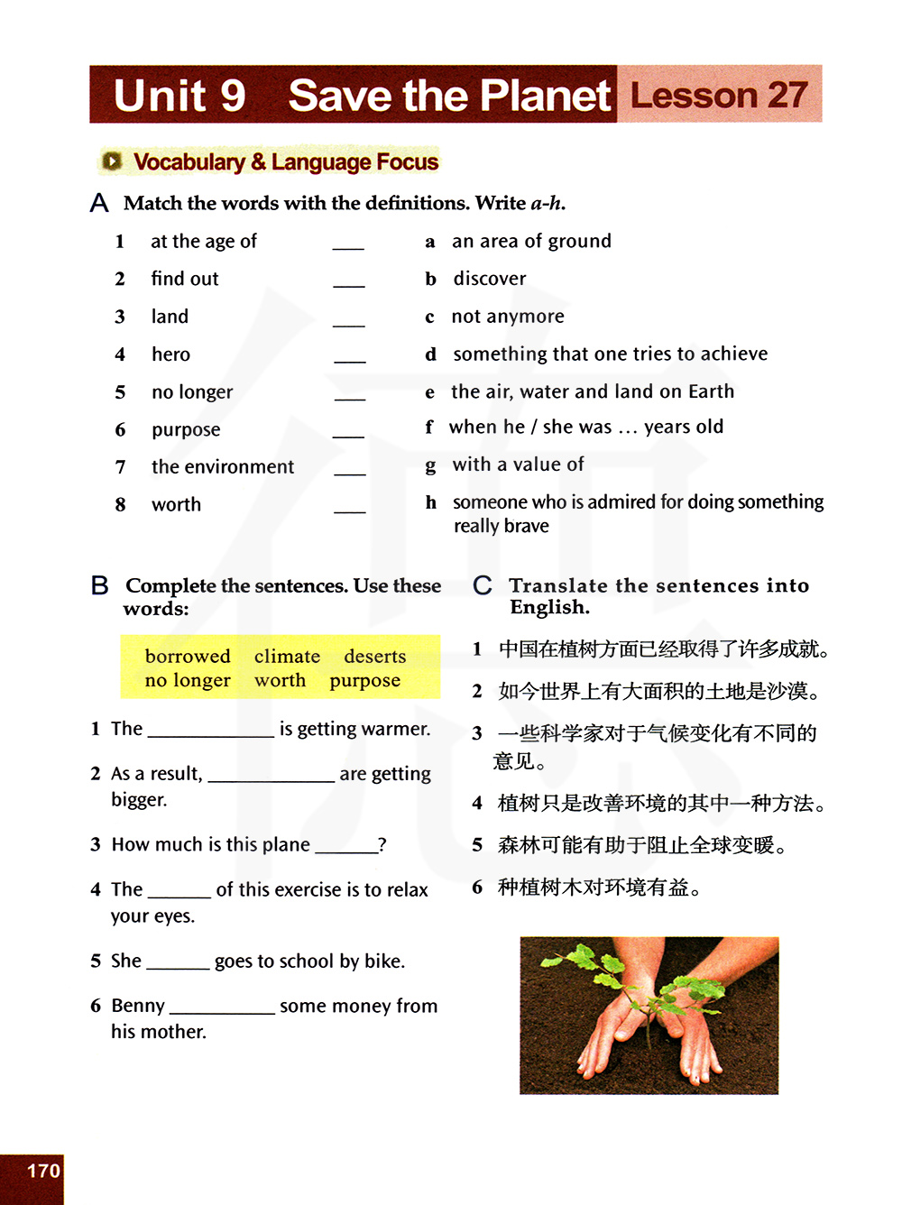 词汇和语言重点 把单词何其定义配对起来。写a-h。