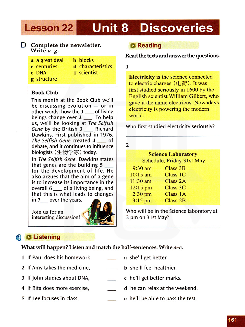 听力 将会发生什么事?听录音不完整的句子搭配起来。写a-e。