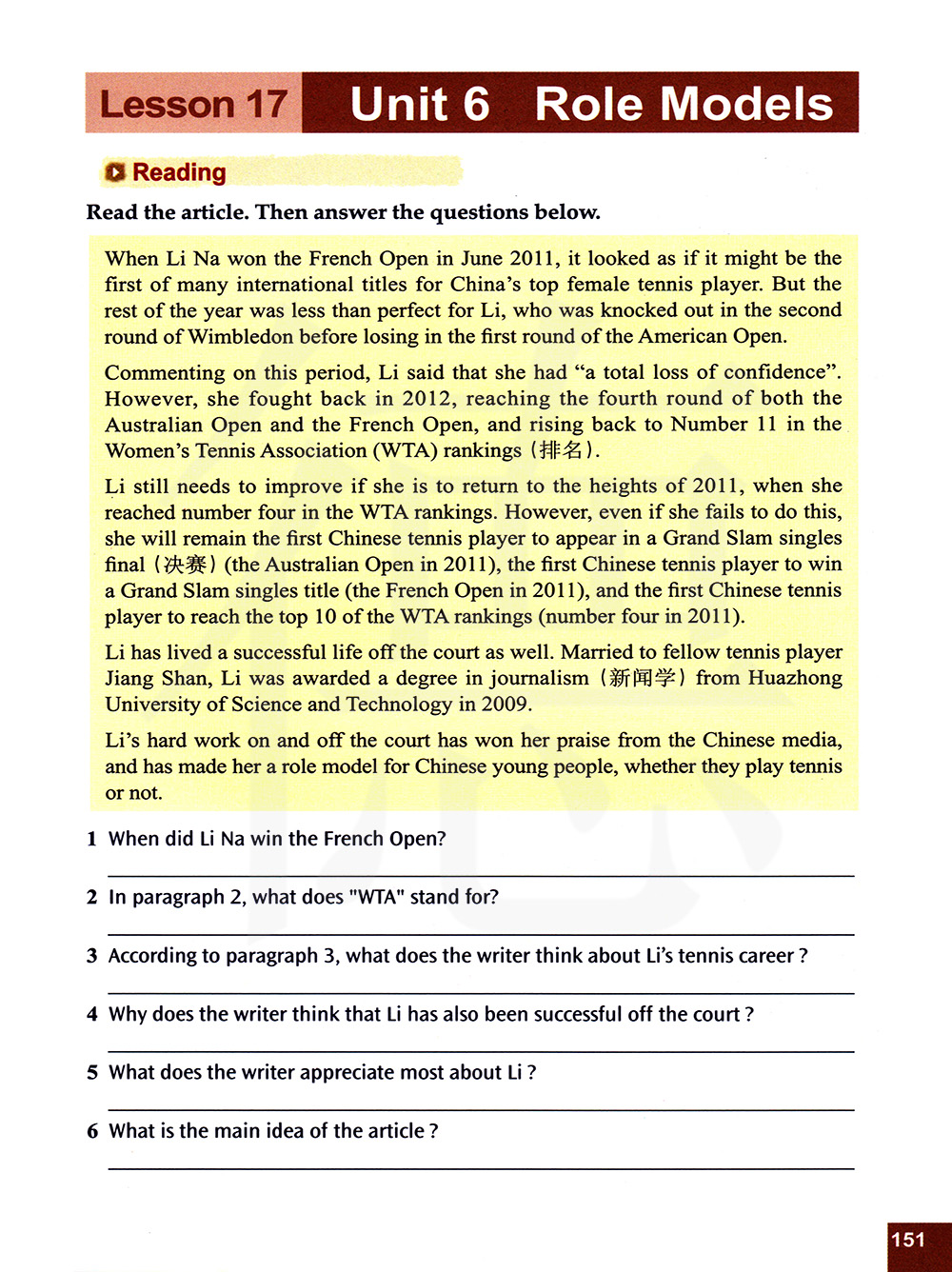 第六单元 榜样 第十七课