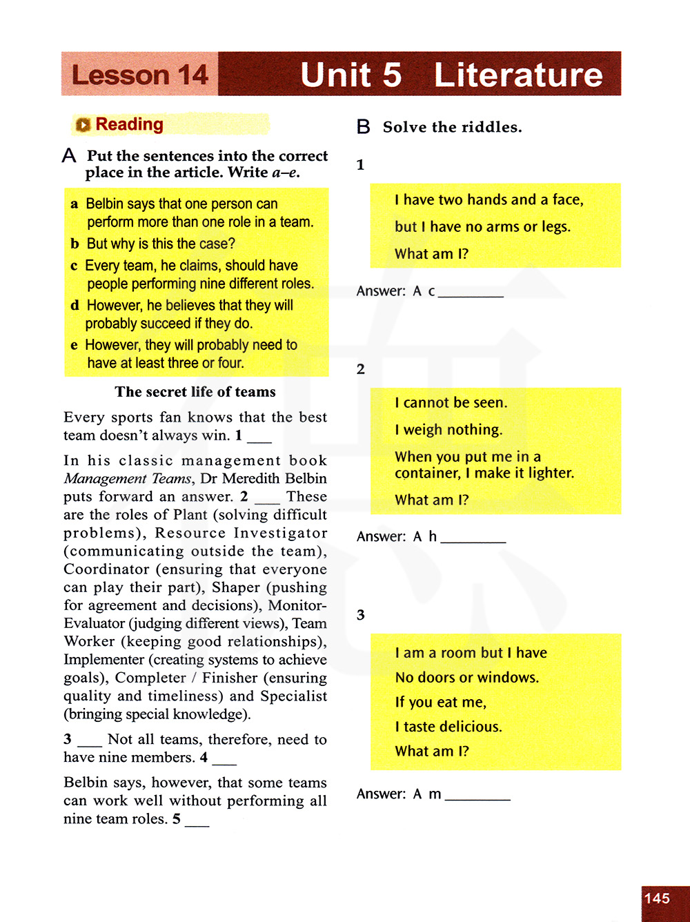 阅读 把句子放入文章中的正确位置。写a-e。