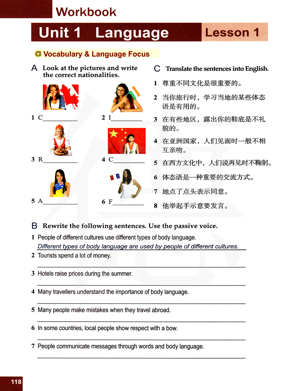 练习册 第一单元 语言 第一课