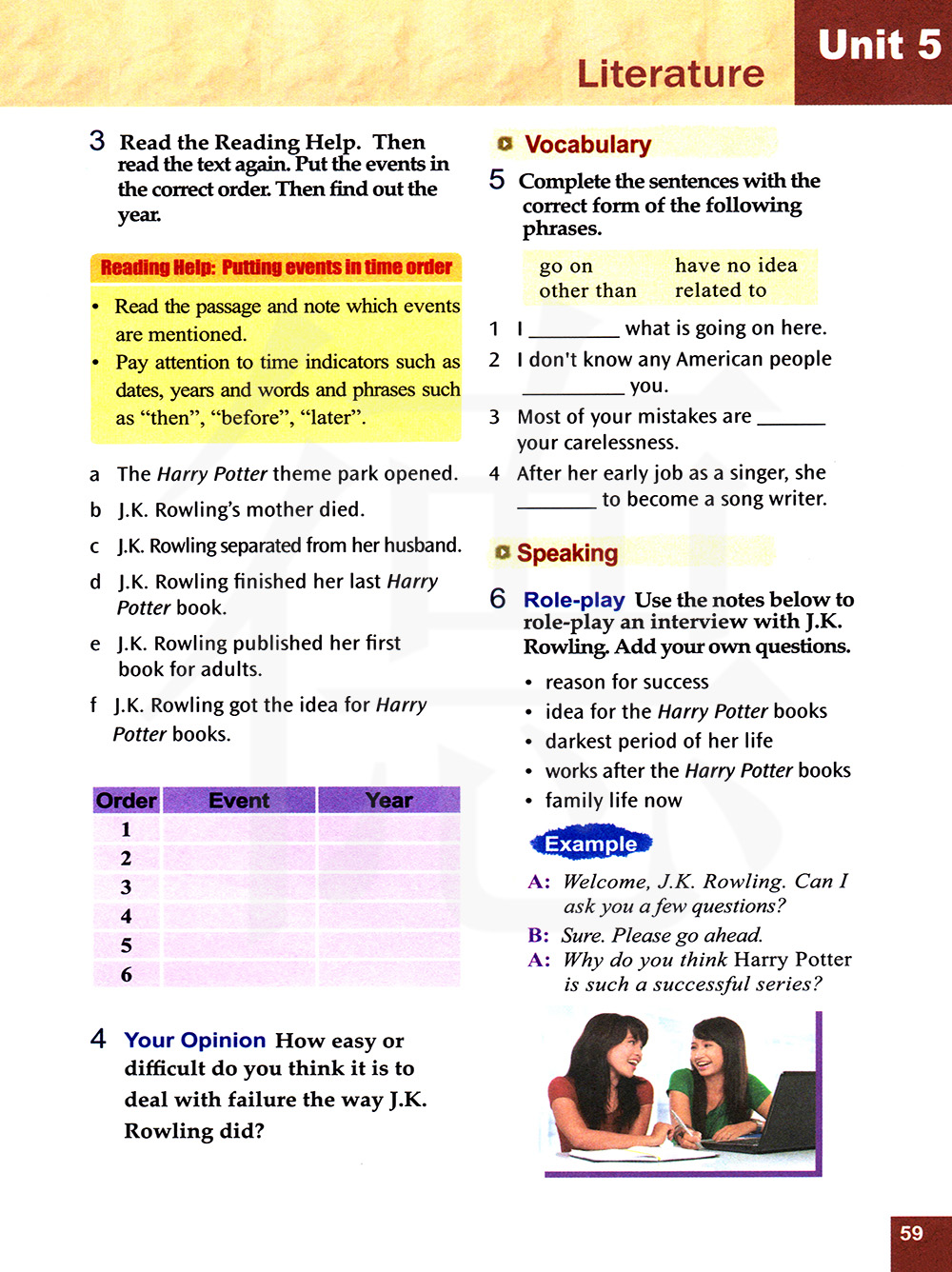 口语 角色扮演 使用下面的笔记来一场对J·K罗琳的采访。添加自己的问题。