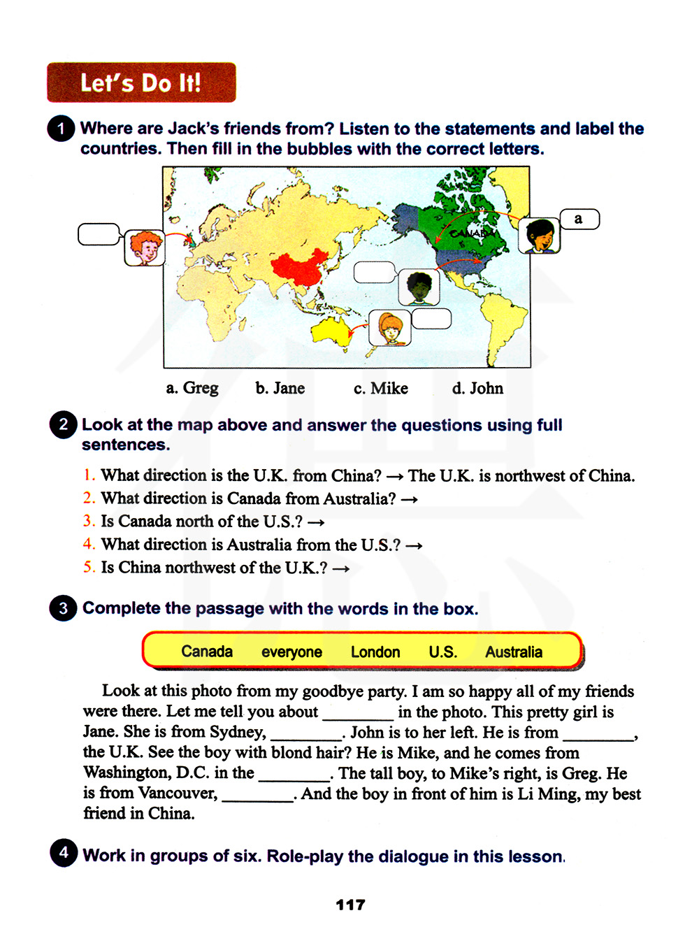 杰克的朋友们都来自哪儿?听陈述并标注国家。然后用正确的字母填到气泡里。