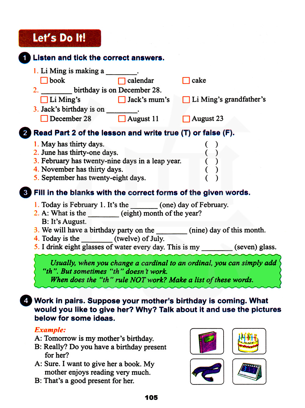 两人一组练习。假设你母亲的生日快到了。你想要给她什么?为什么?谈论它并用下面图片的一些想法。
