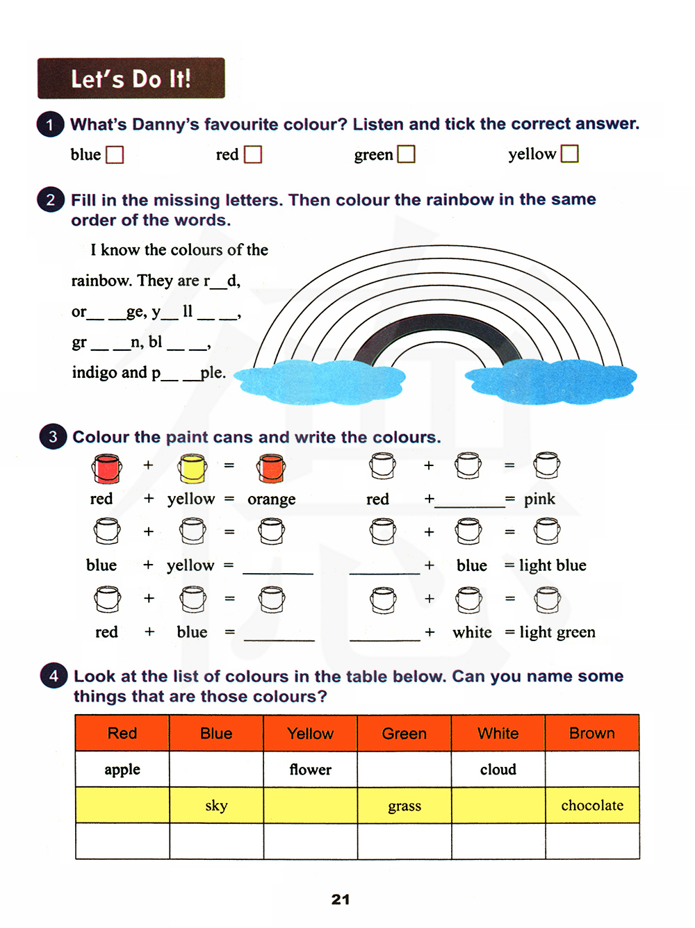 填写缺失的字母。然后按单词的顺序给彩虹涂色。