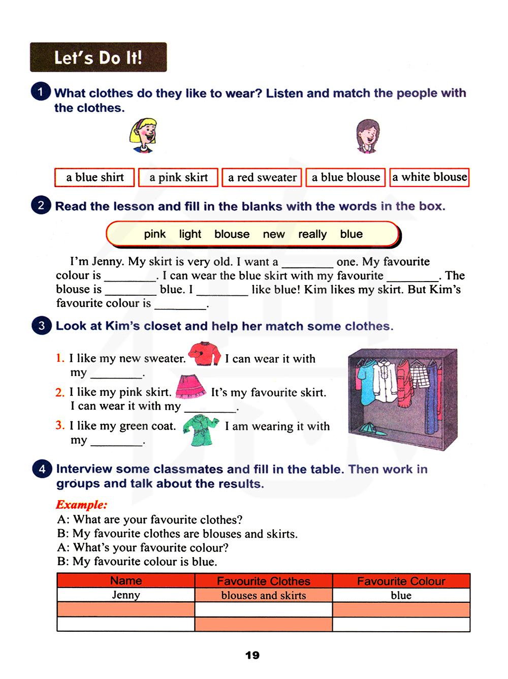 名字、最喜欢的衣服 、最喜欢的颜色、詹妮、衬衫和裙子、 蓝色