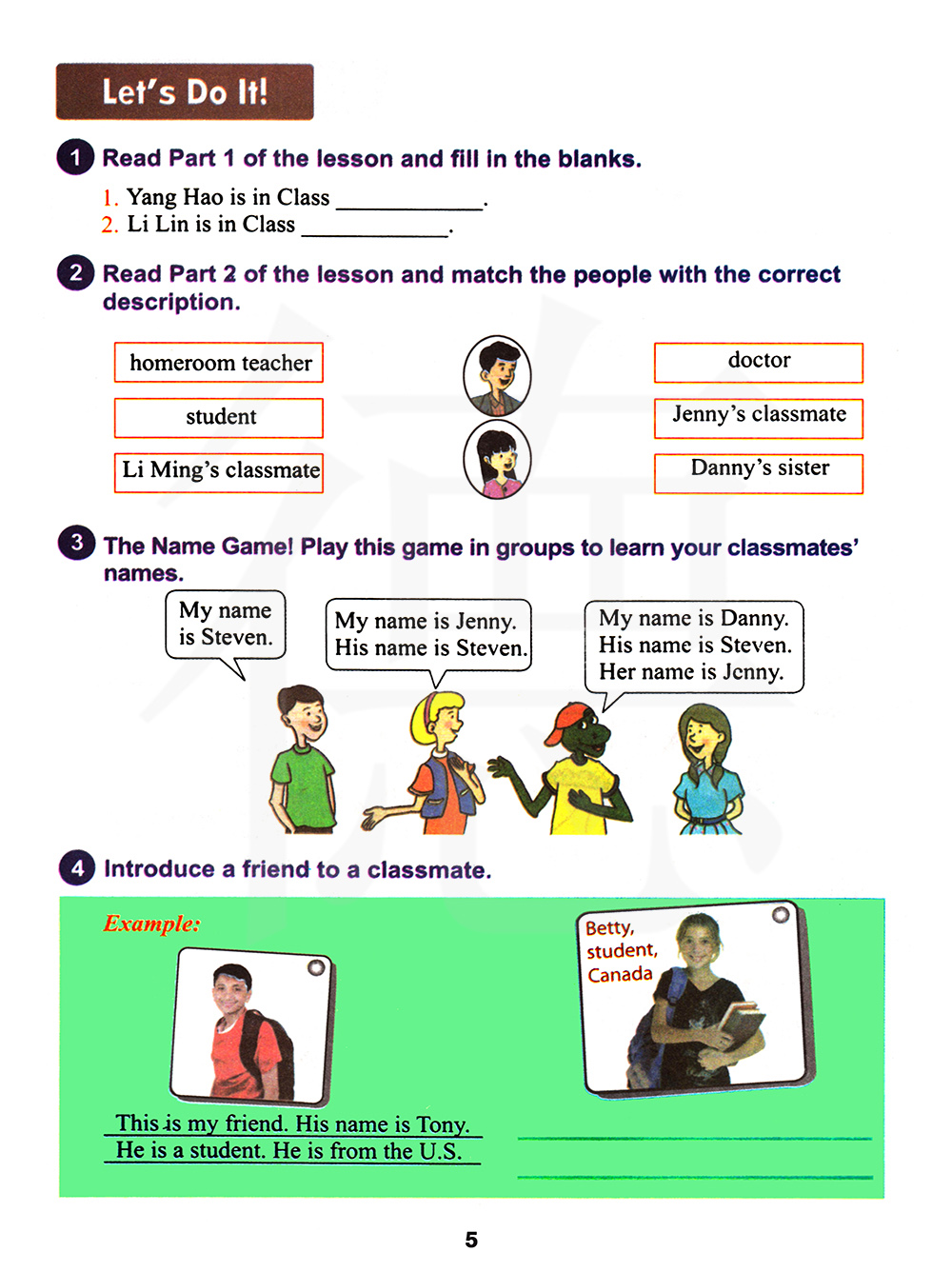 我叫丹尼。他叫史蒂文。她叫詹妮。