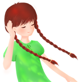 工作时,用别针把辫子固定住。