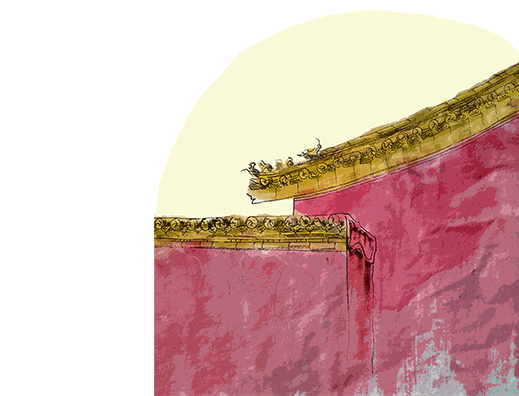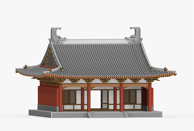 带天窗的斜屋顶连接着两边的山墙。