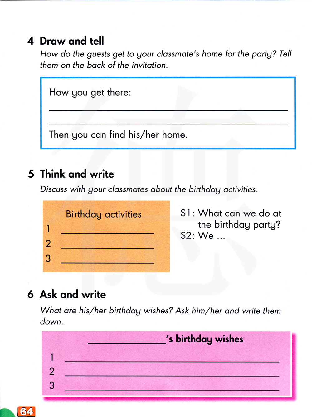 学生一:在生日聚会上我们可以做什么? 学生二:我们……