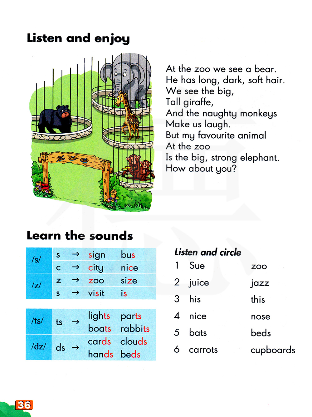 s—签名、公共汽车 c—城市、美好的 z—动物园、尺寸 s—参观、是