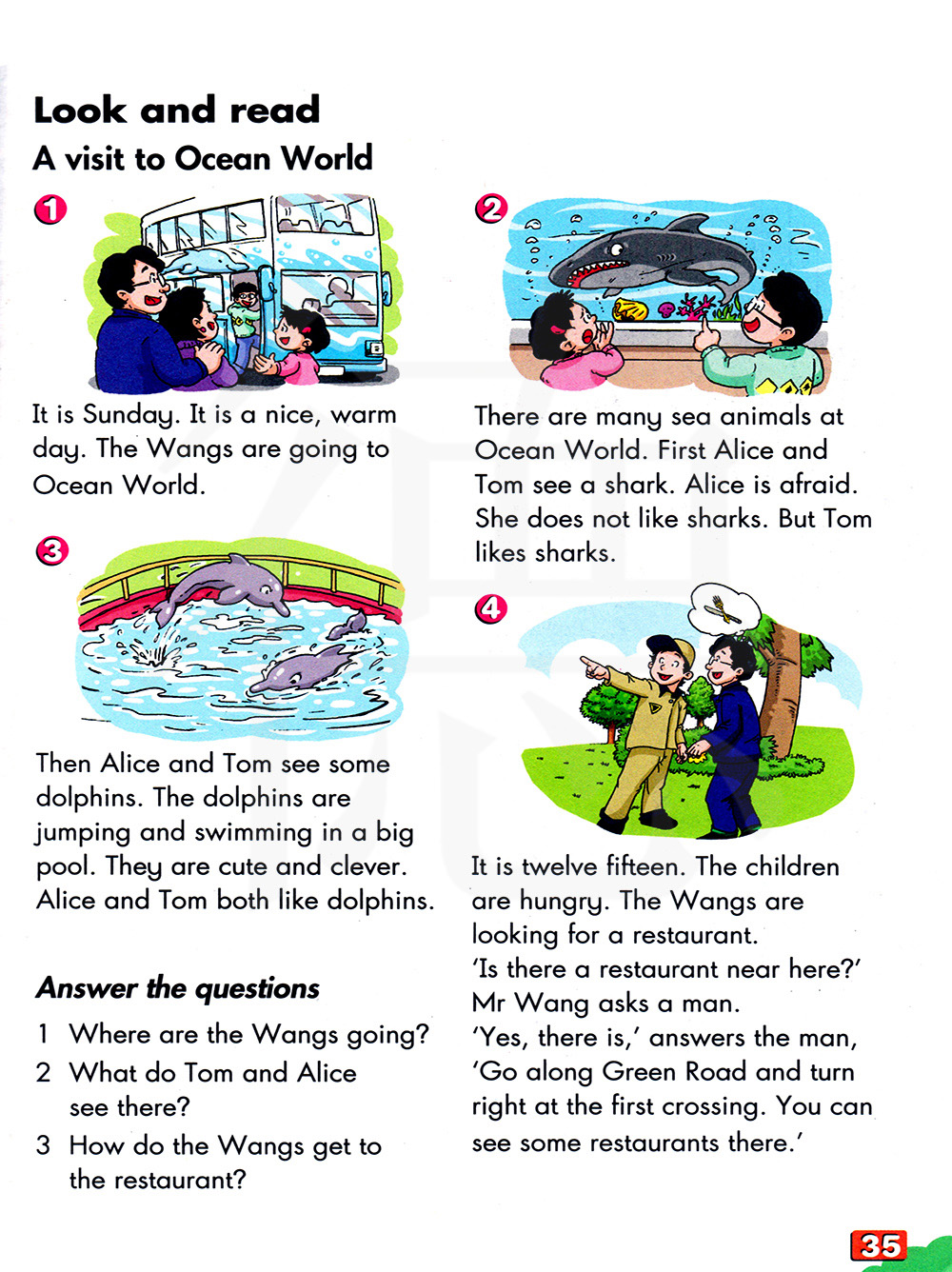 1,王先生一家打算去哪里? 2、汤姆和爱丽丝在那里看到了什么? 3、王先生一家怎么去餐馆呢?