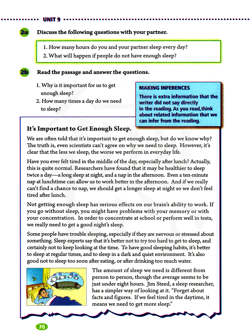我们所需要的睡眠时间因人而异,尽管平均时间似乎不到八个小时。睡眠研究者吉姆斯蒂德有一种更简单的方法来看待睡眠。如果我们白天觉得累了,那就意味着我们需要更多的睡眠。