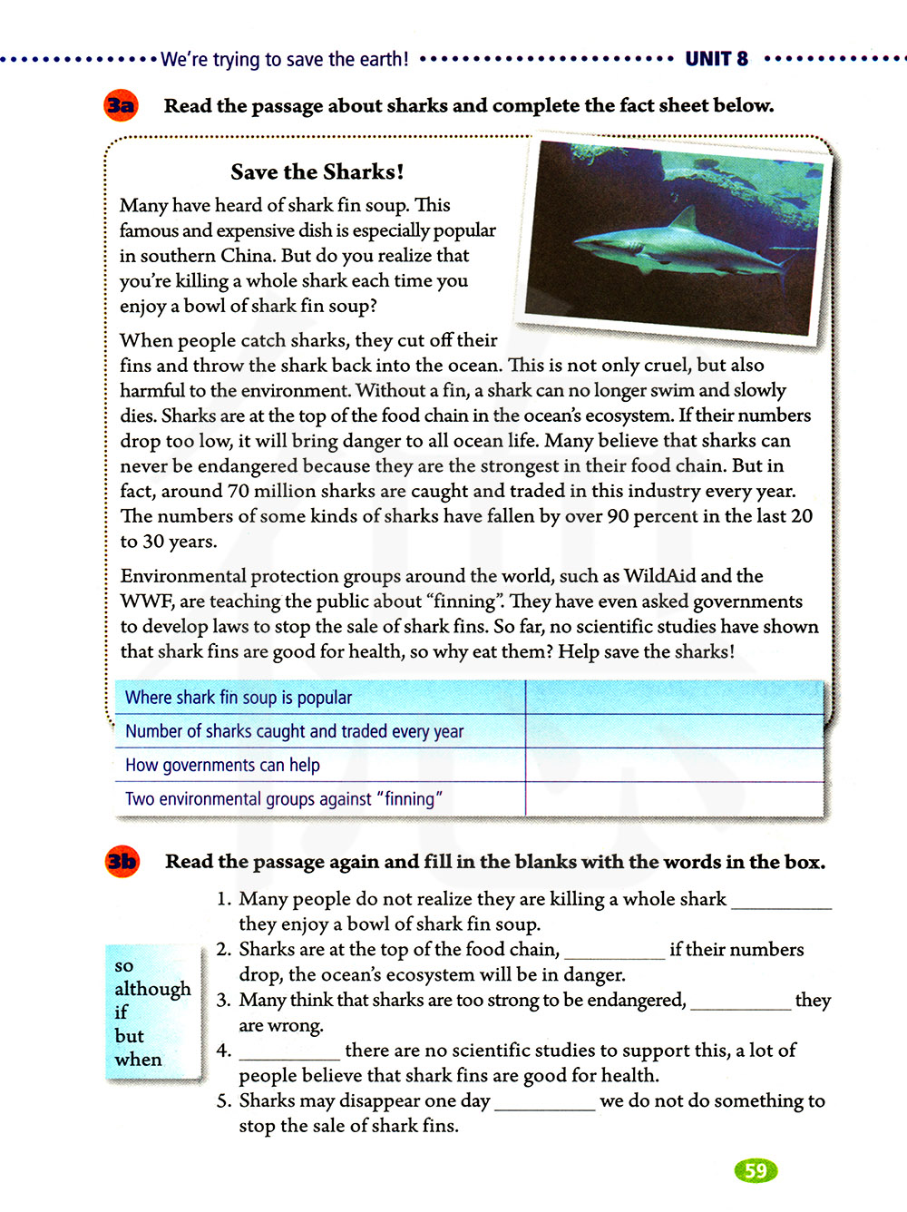 阅读这篇关于鲨鱼的文章,并完成下面的事实表格。