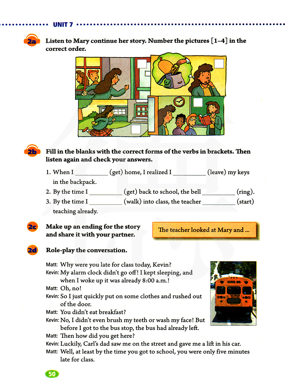 听玛丽继续讲她的故事,给图片标上正确的序号[1-4]