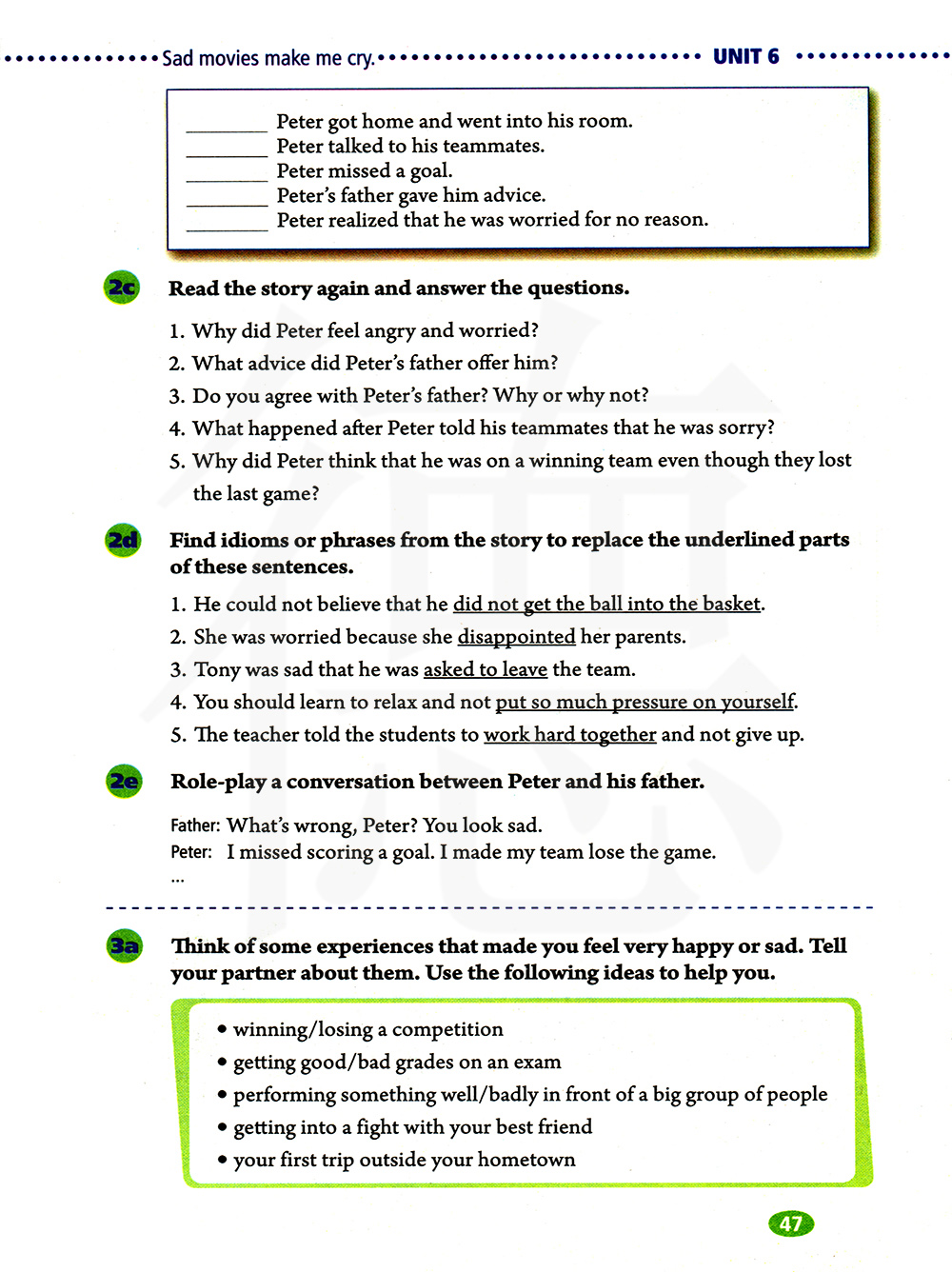 怎么了,彼得?你看起来很伤心。 我错过了一个球,我让我的球队输了比赛。