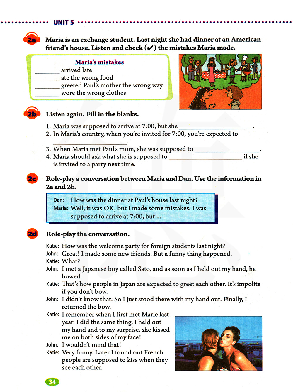 玛利亚是一名交换生,她昨天晚上在一个美国朋友家里吃晚餐,听一听,勾出玛利亚犯的错误。