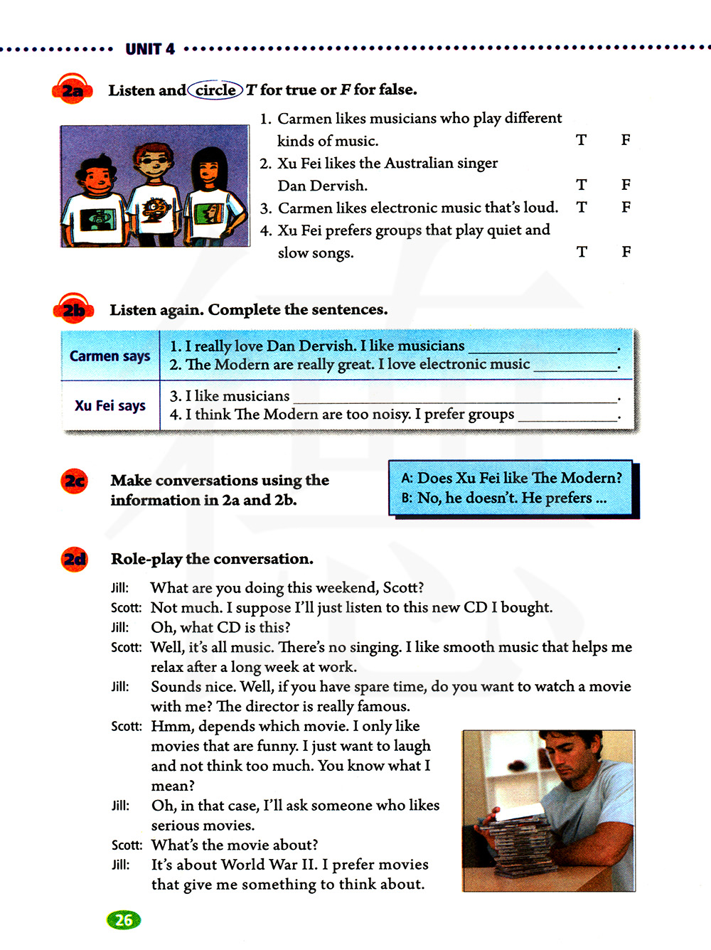 使用2a和2b里的信息编对话。